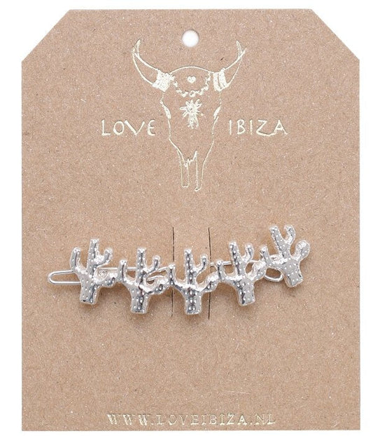 Zilveren haarclip cactus